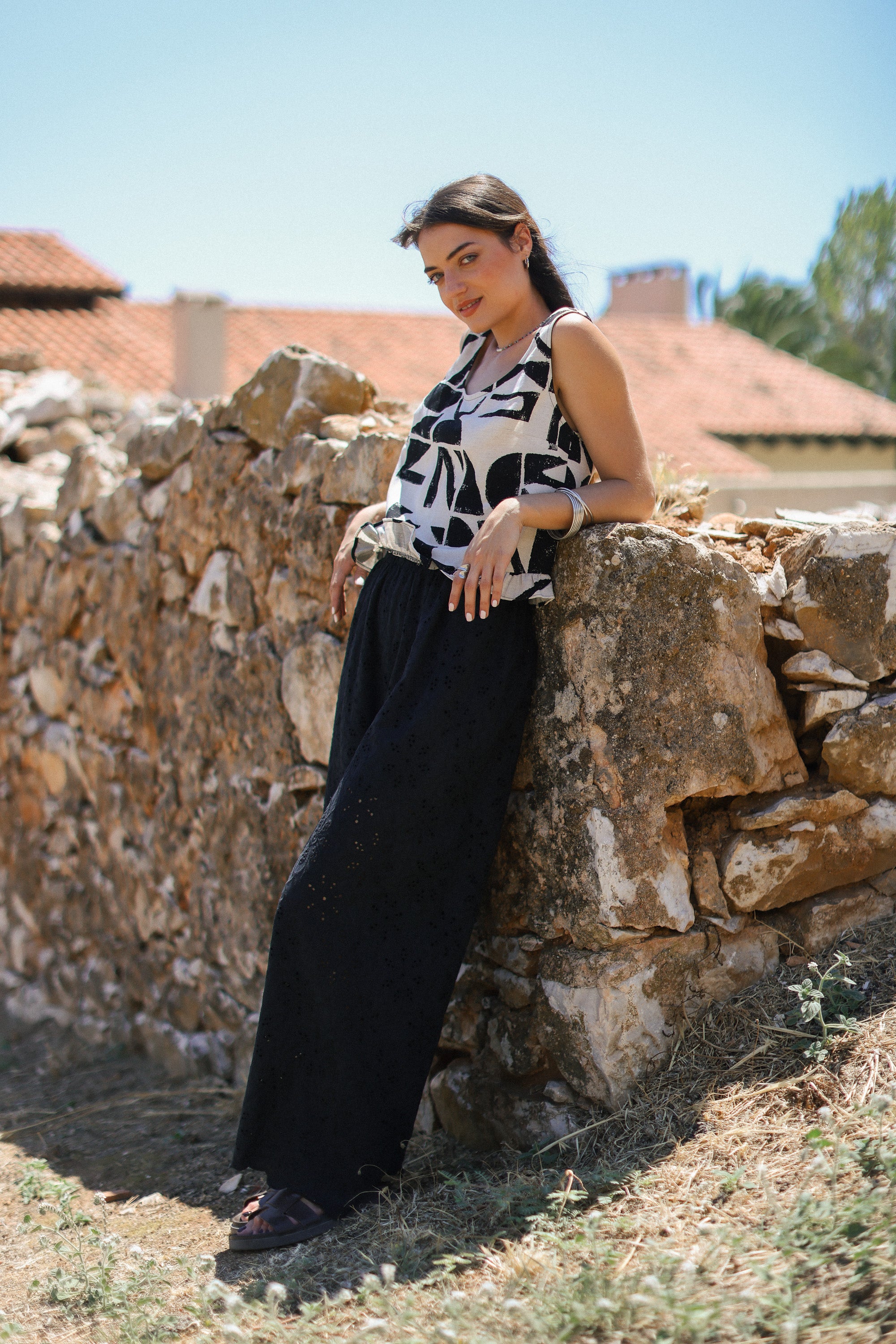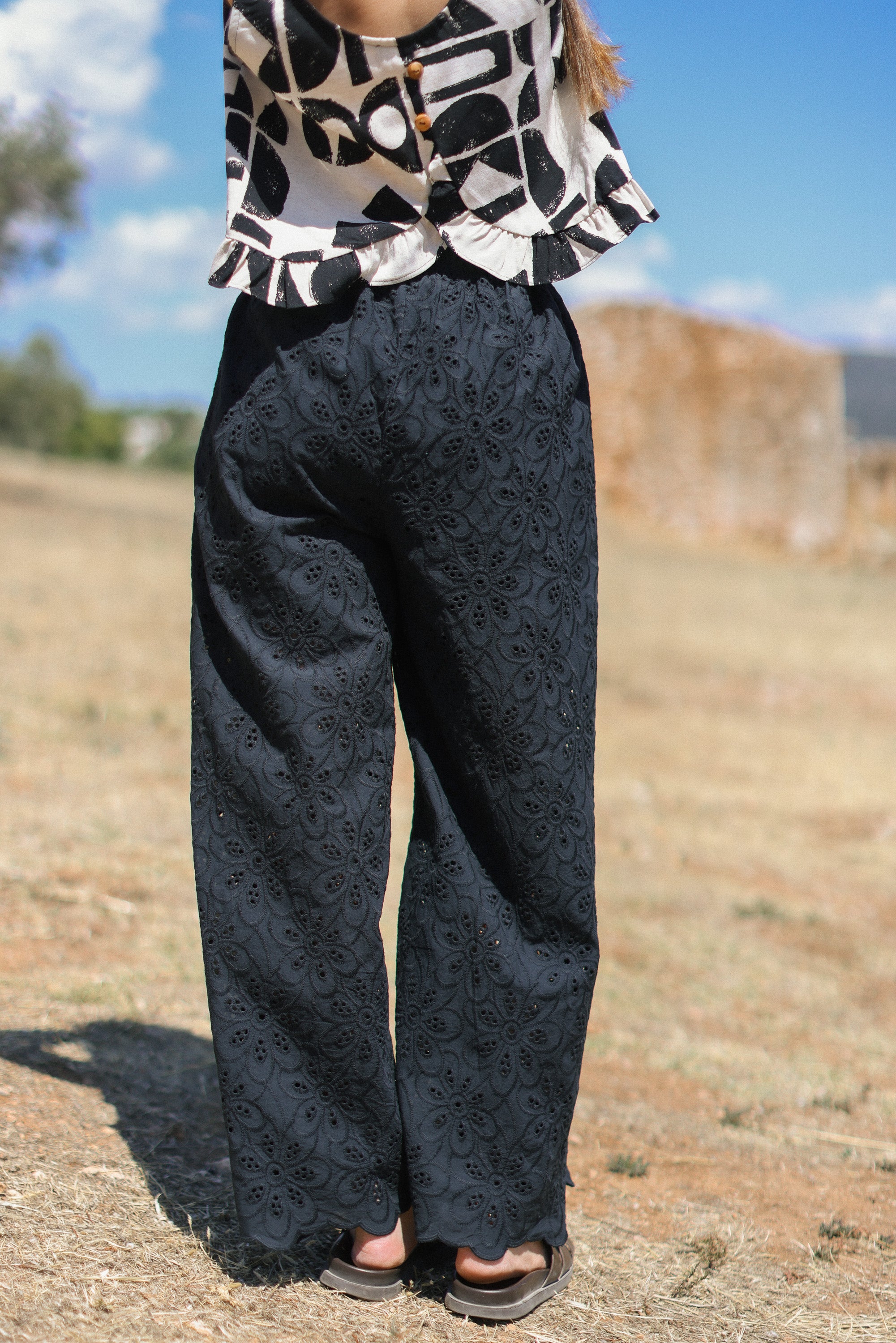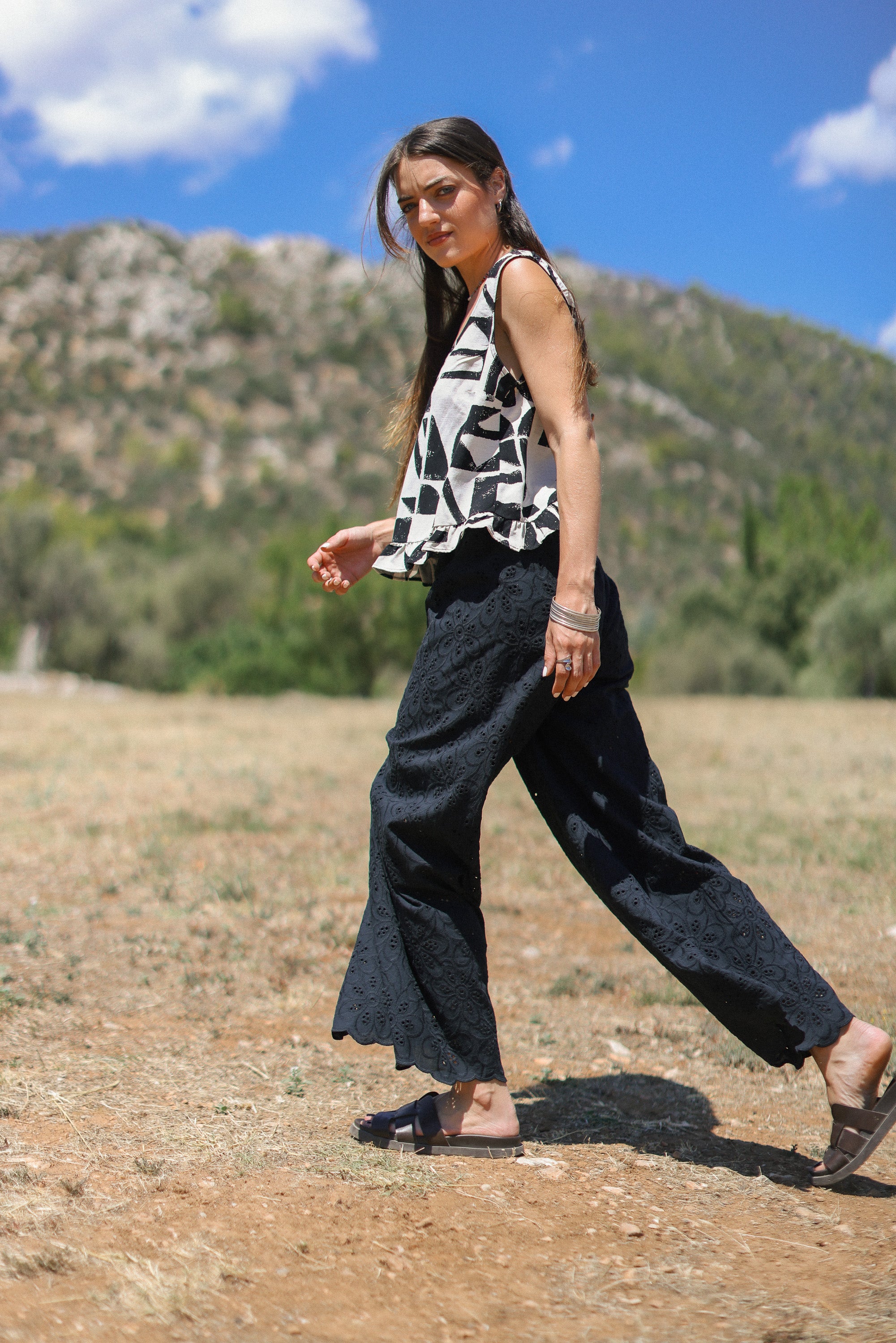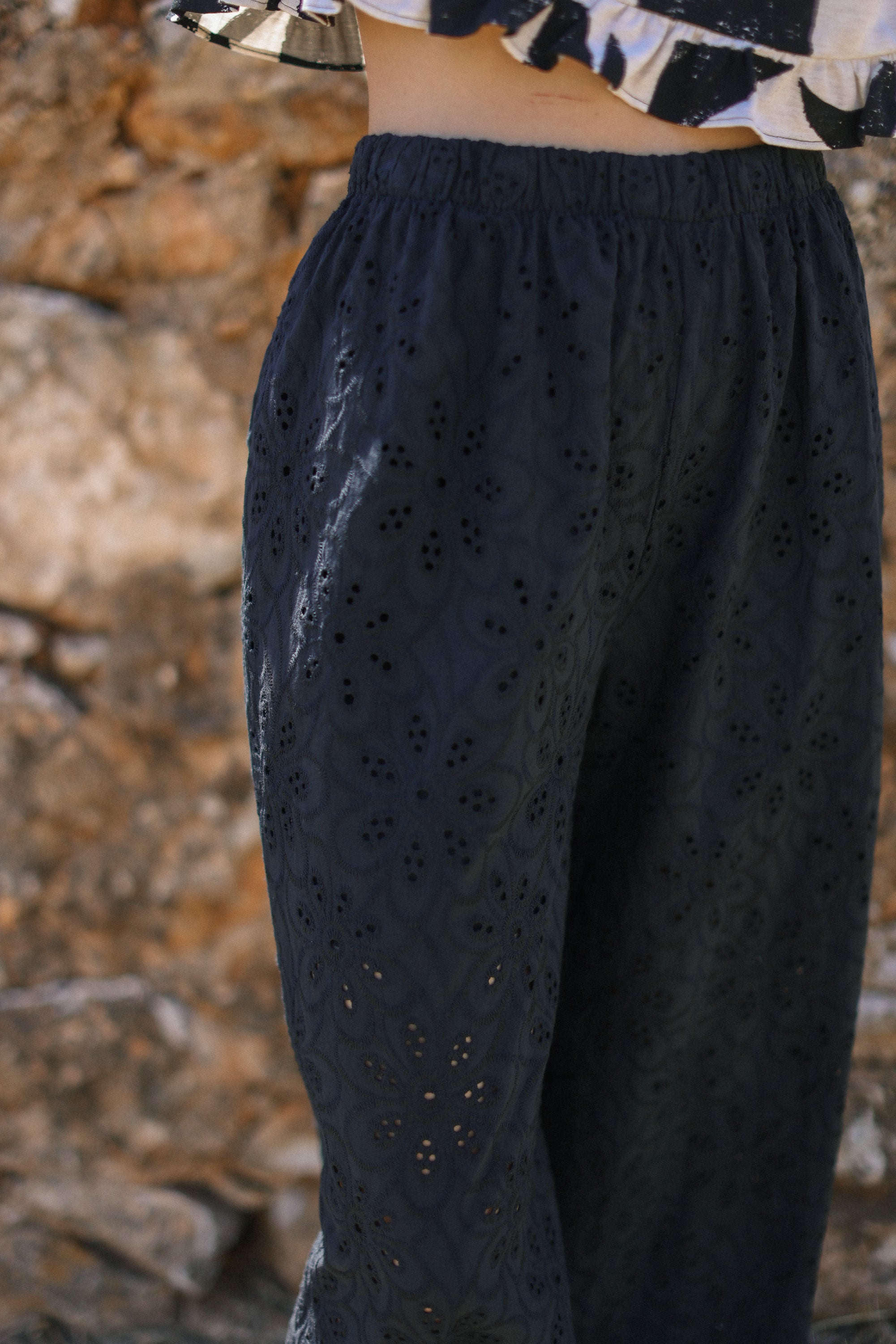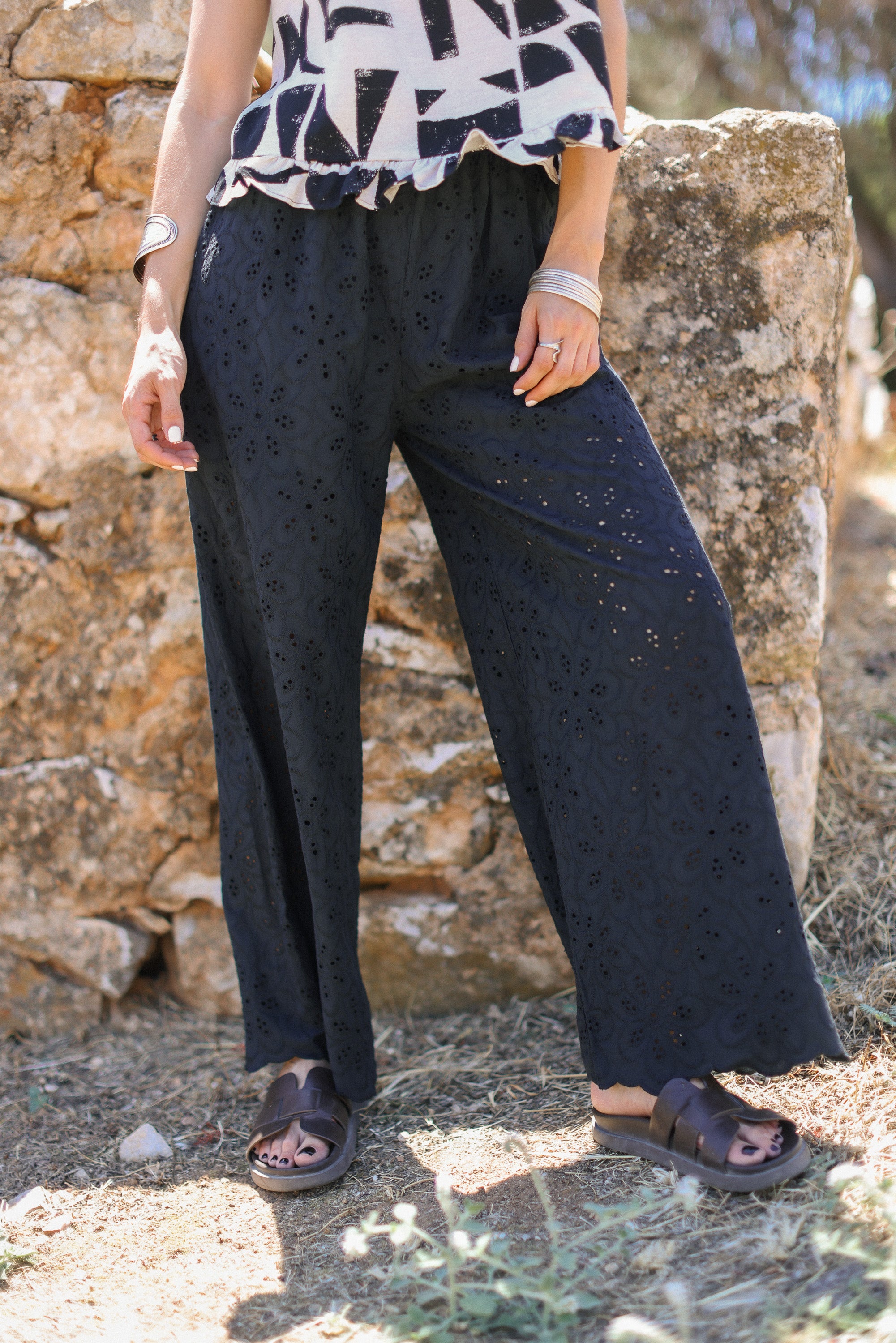 Aus superleichtem Stoff mit zarten Broderie-Details gefertigt, hat die Hose ein weiches Futter für mehr Deckung und einen elastischen Bund für den perfekten Sitz. Perfekt für warme Tage, an denen du dich mühelos schick fühlen willst.