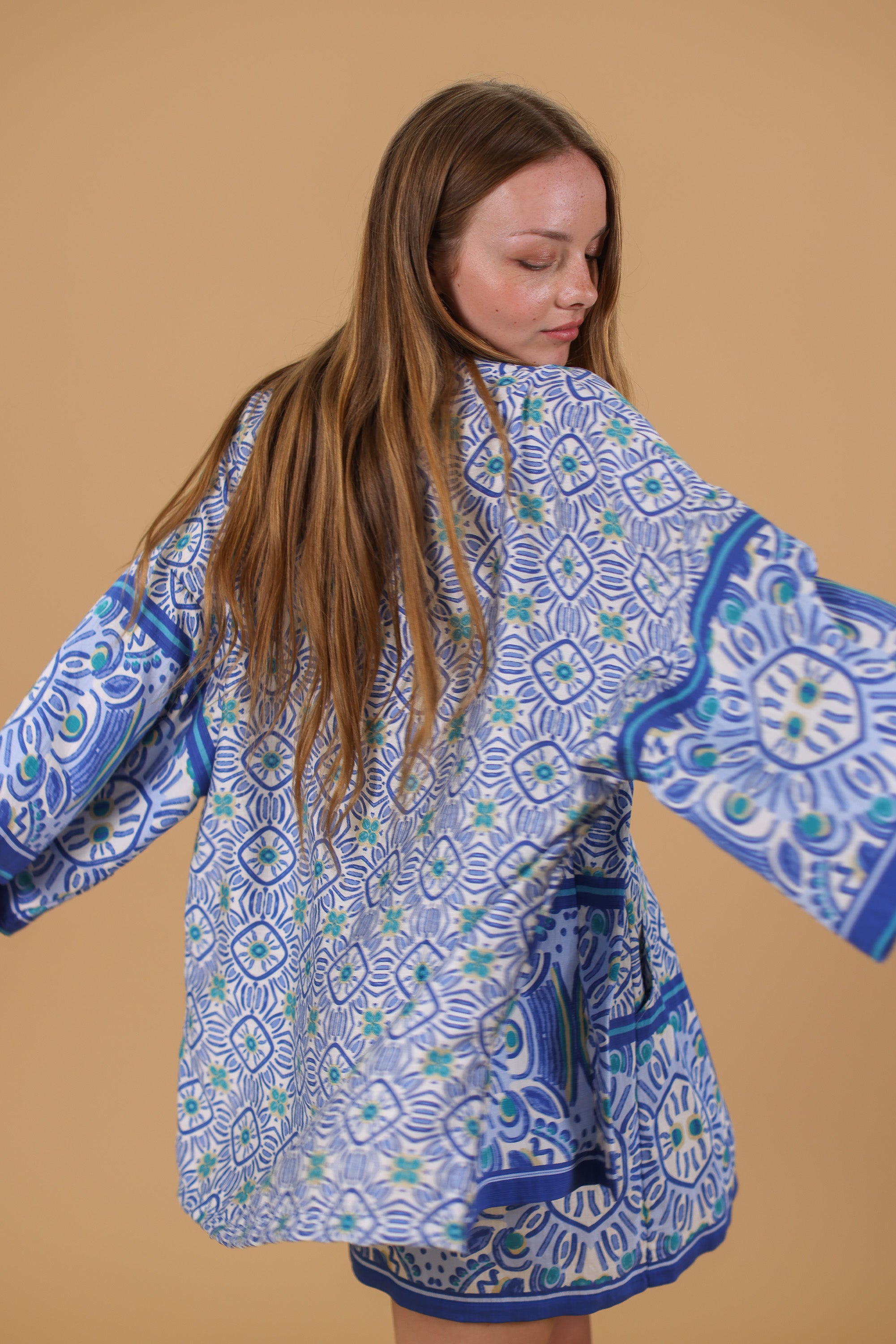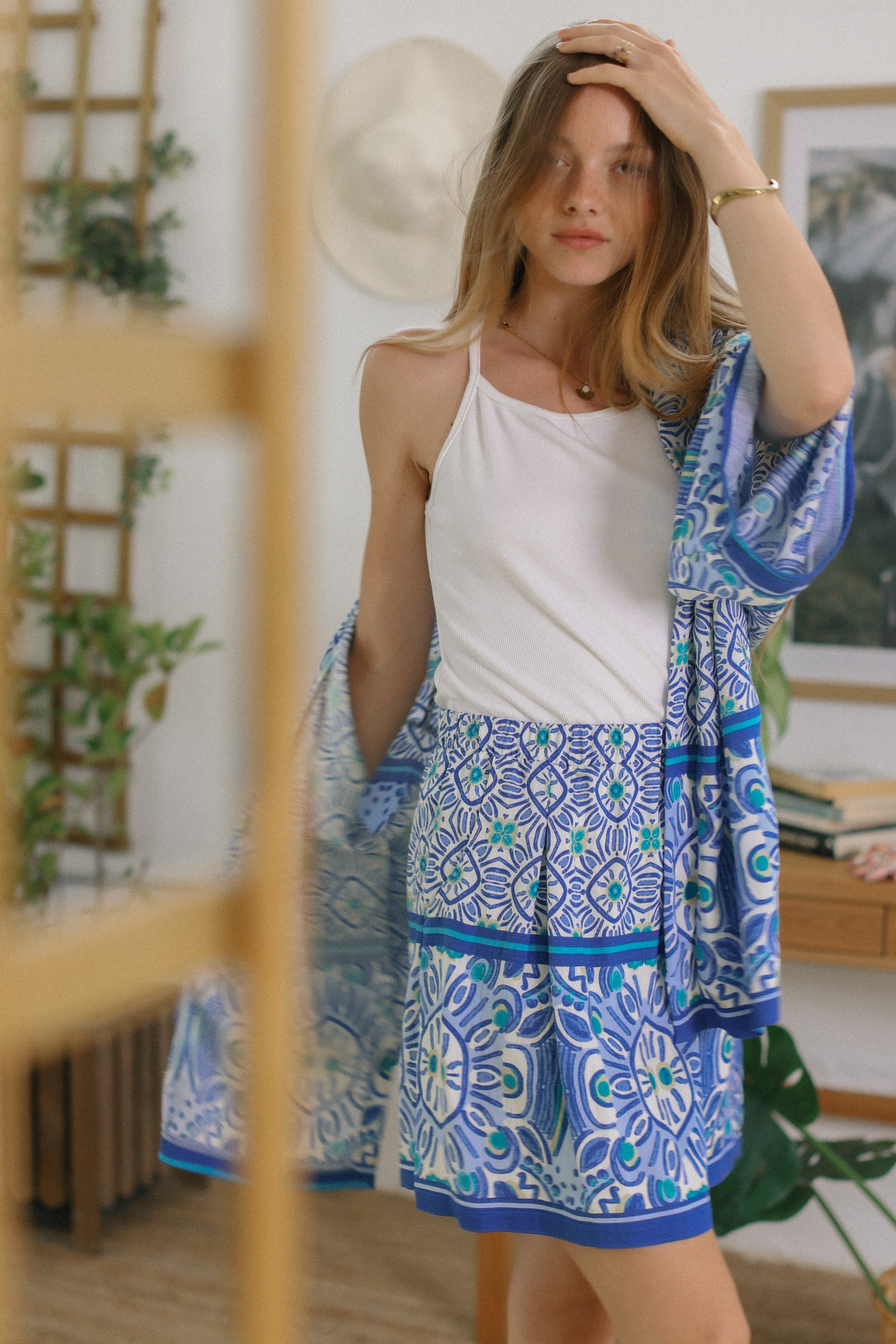 Elevate your wardrobe with our Presley Cardigan. This light and breathable cardigan is perfect for every summer outfit. Featuring a loose fit and a gorgeous Mesogeian pattern fabric. The Presley Cardigan combines comfort with style, making it a versatile piece you'll reach for again and again. You can pair it with Skirt Anassa Mesogeios for a more seamless look.