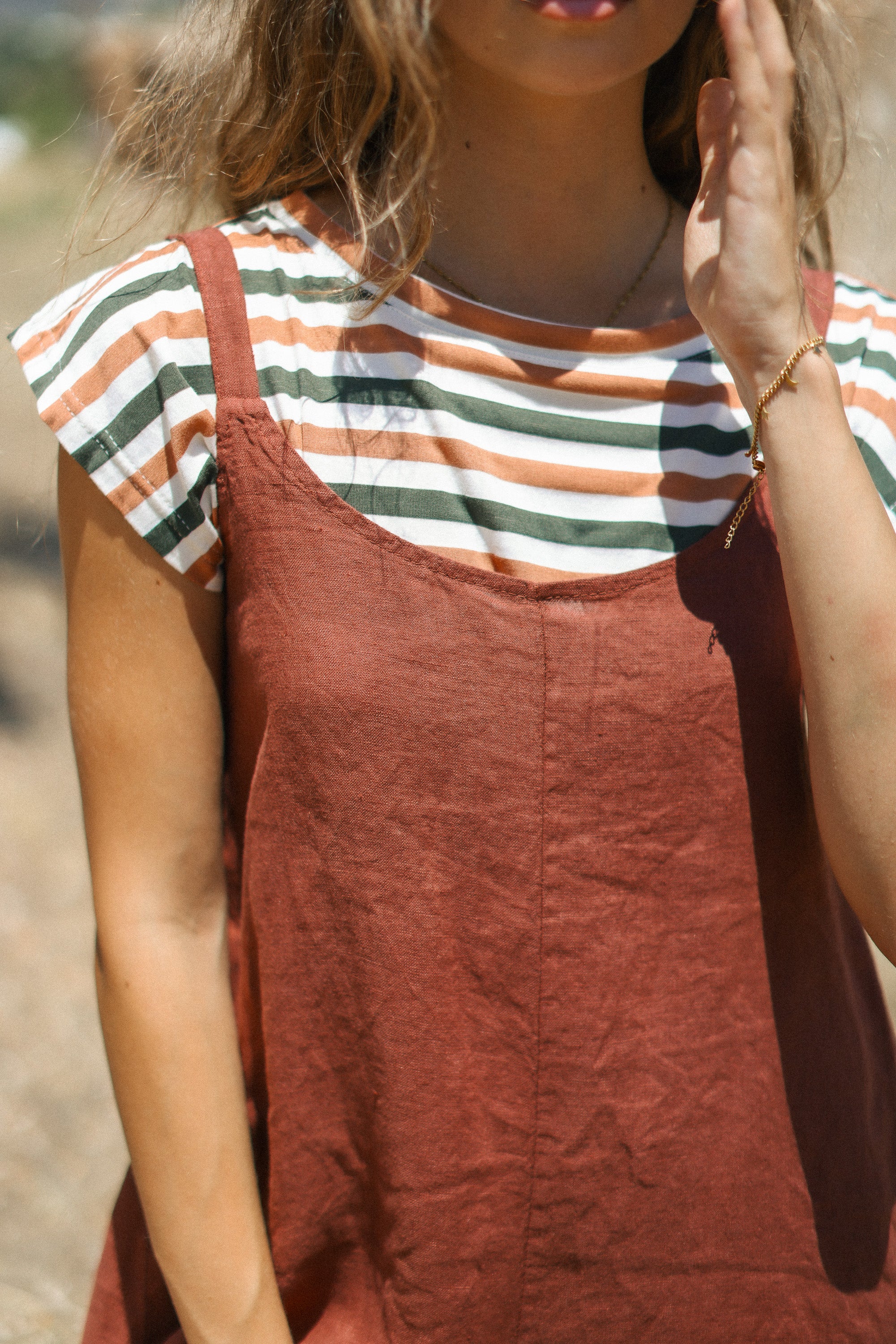 Sometimes you just need to be comfortable and the Top Aria got your back. In new rustic striped pattern, made with light & breathable fabric that's perfect for every time of the day. We've also added a boatneck and sleeveless design so you can feel free to wear it with anything.