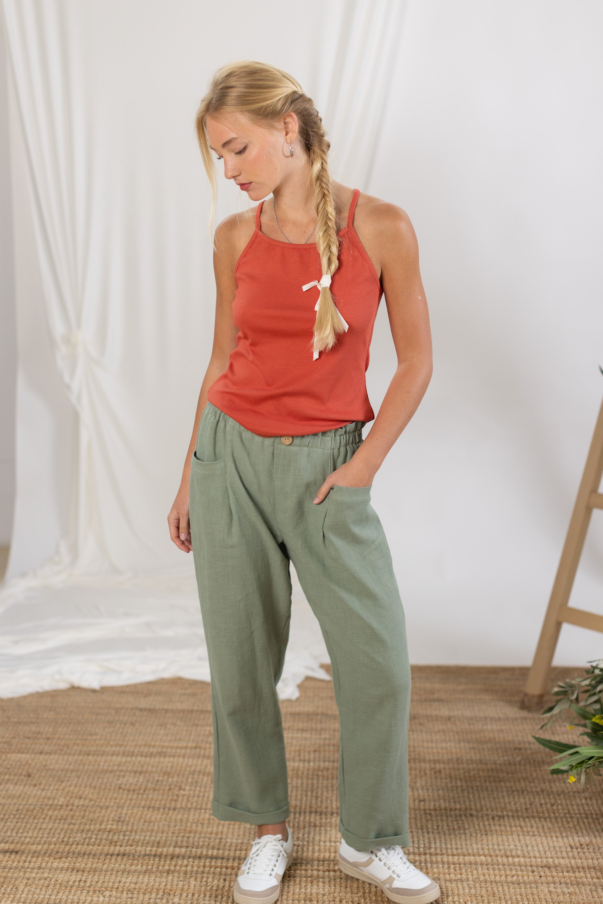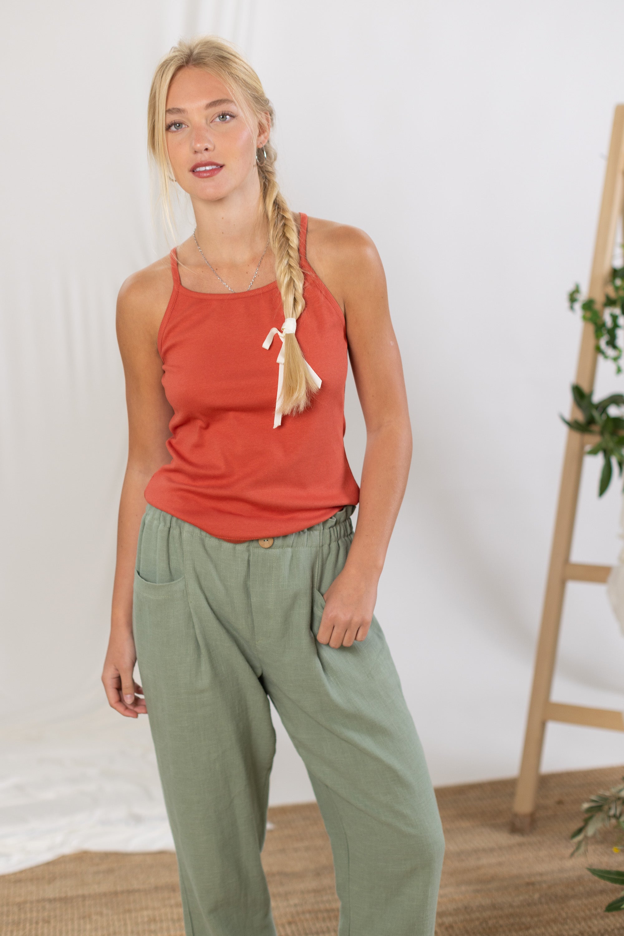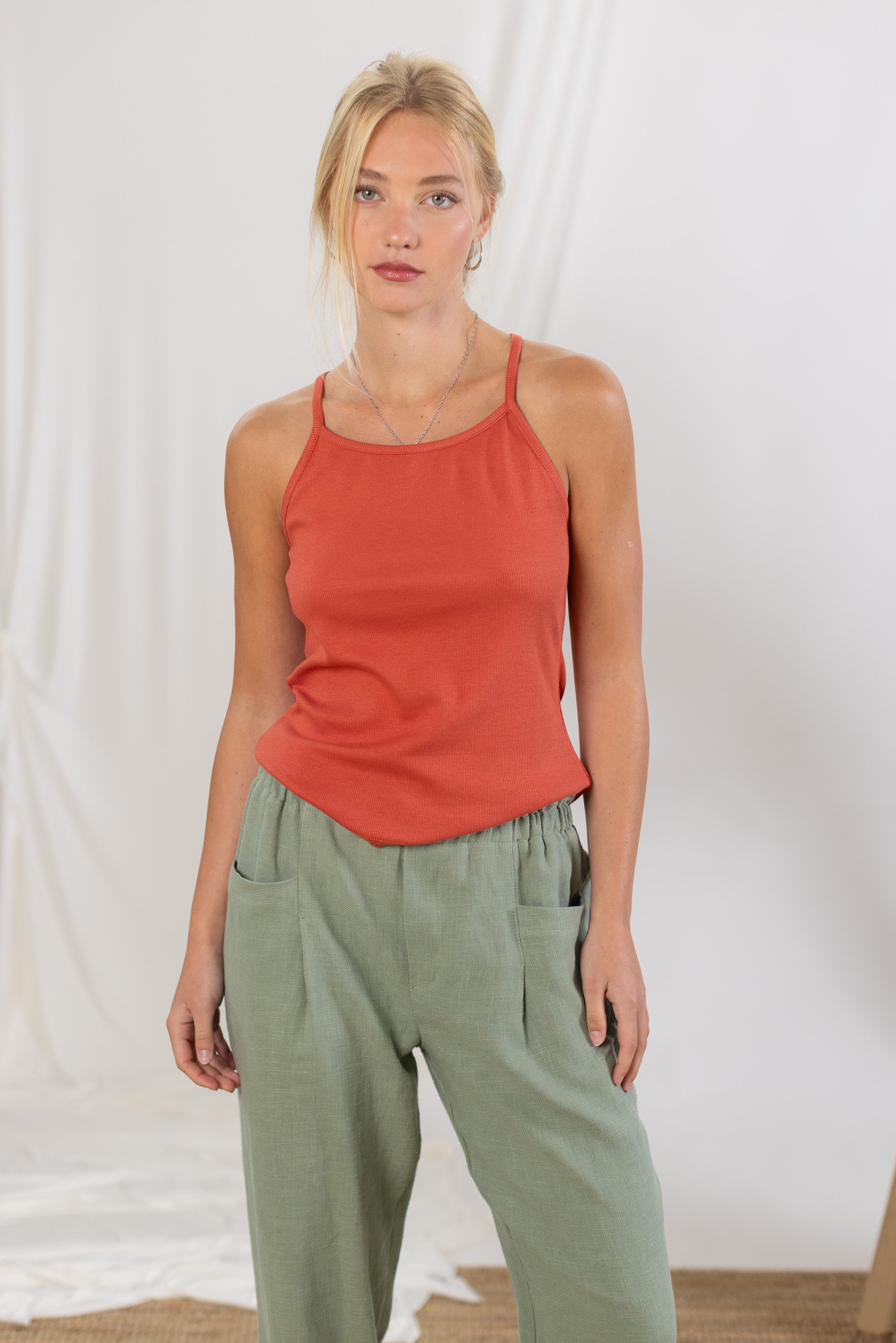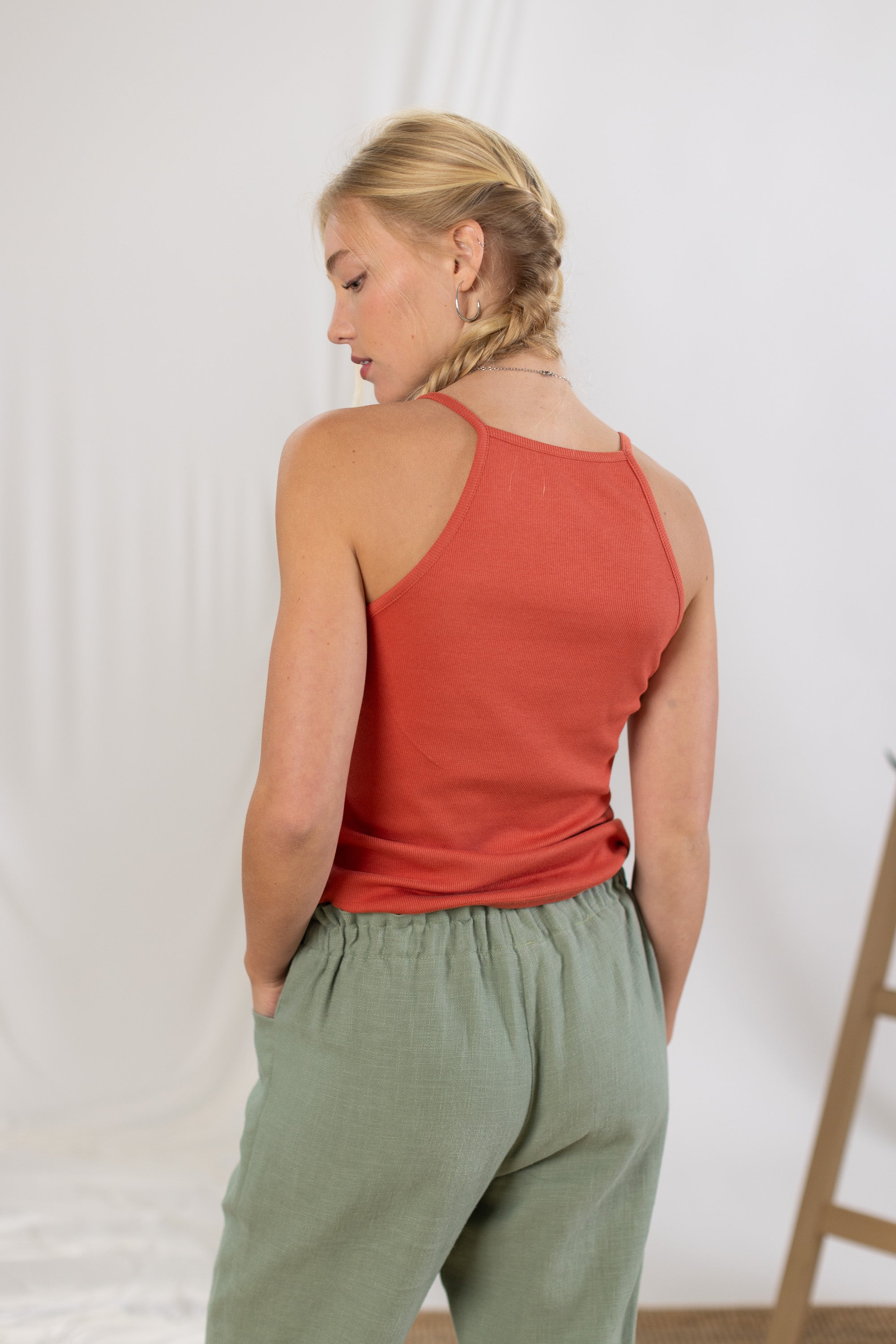Effortlessly stylish, the Top Chica Sunset Orange features a halter neck design and comfy ribbed fabric in a sleek orange color. Achieve a flattering fit and elevate your wardrobe with this essential piece.